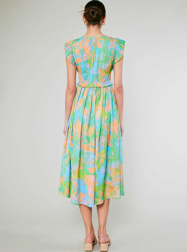 Abstract Printed Pleated Midi Dress - The Color Collab