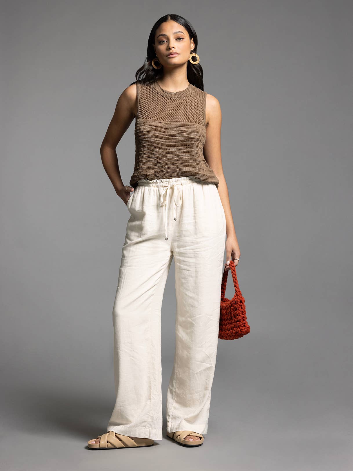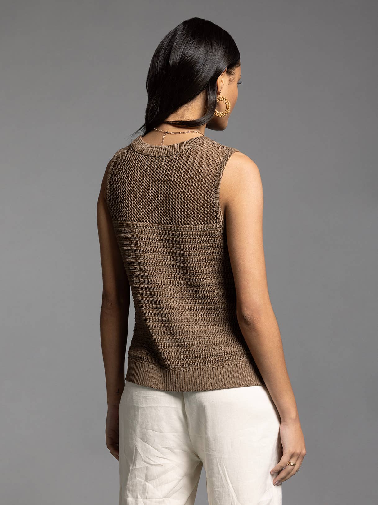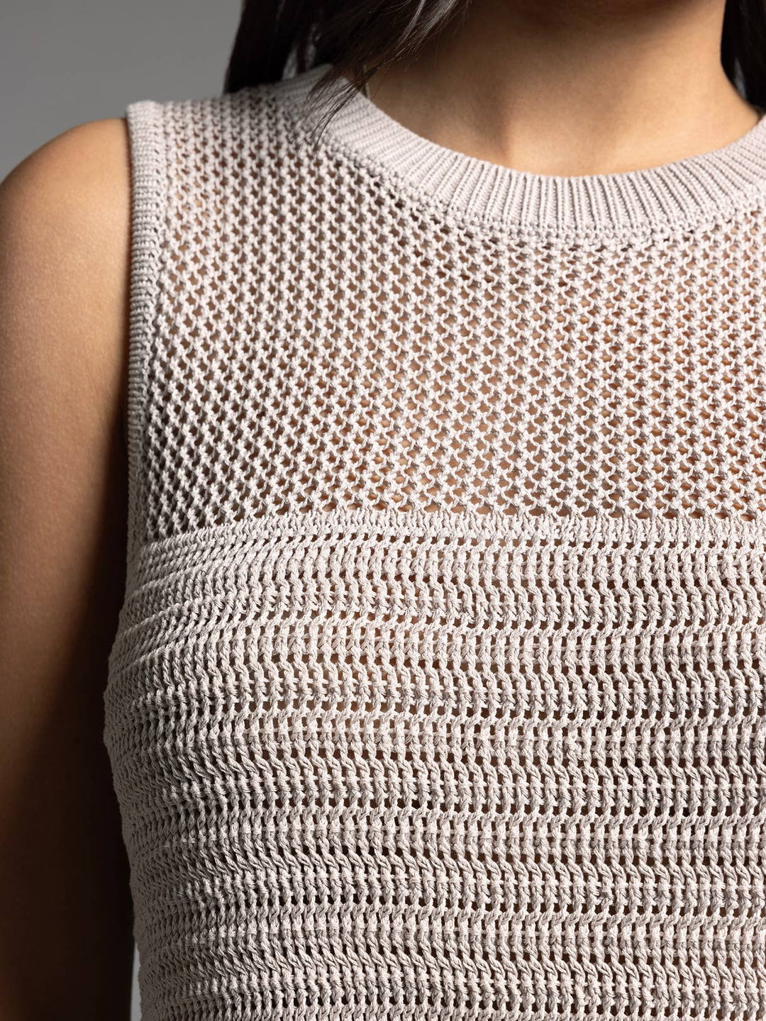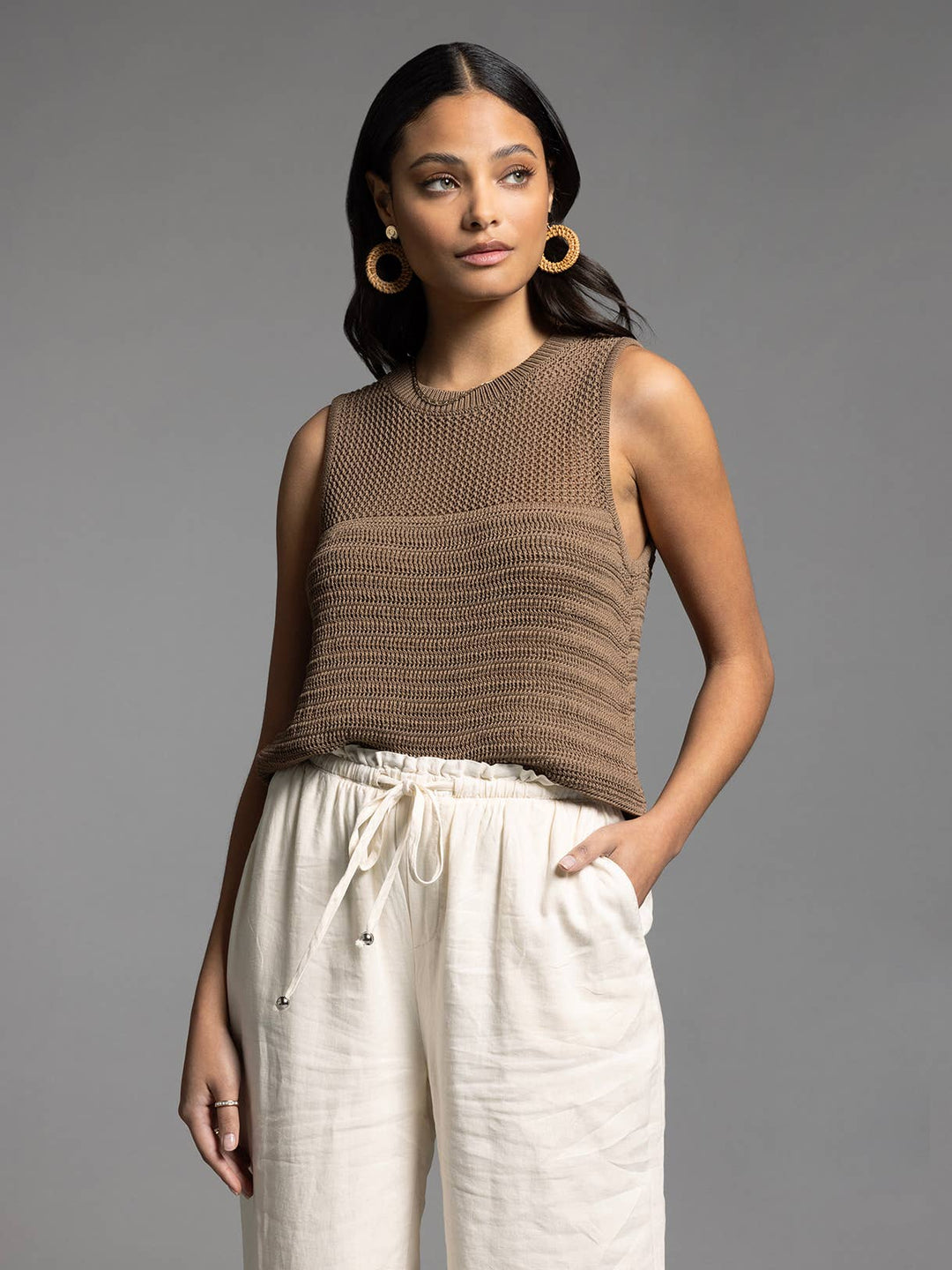 This ivory Knit Sayra Tank will keep you cool and stylish with its side vents. Perfect for any occasion, it's a versatile addition to your wardrobe.
