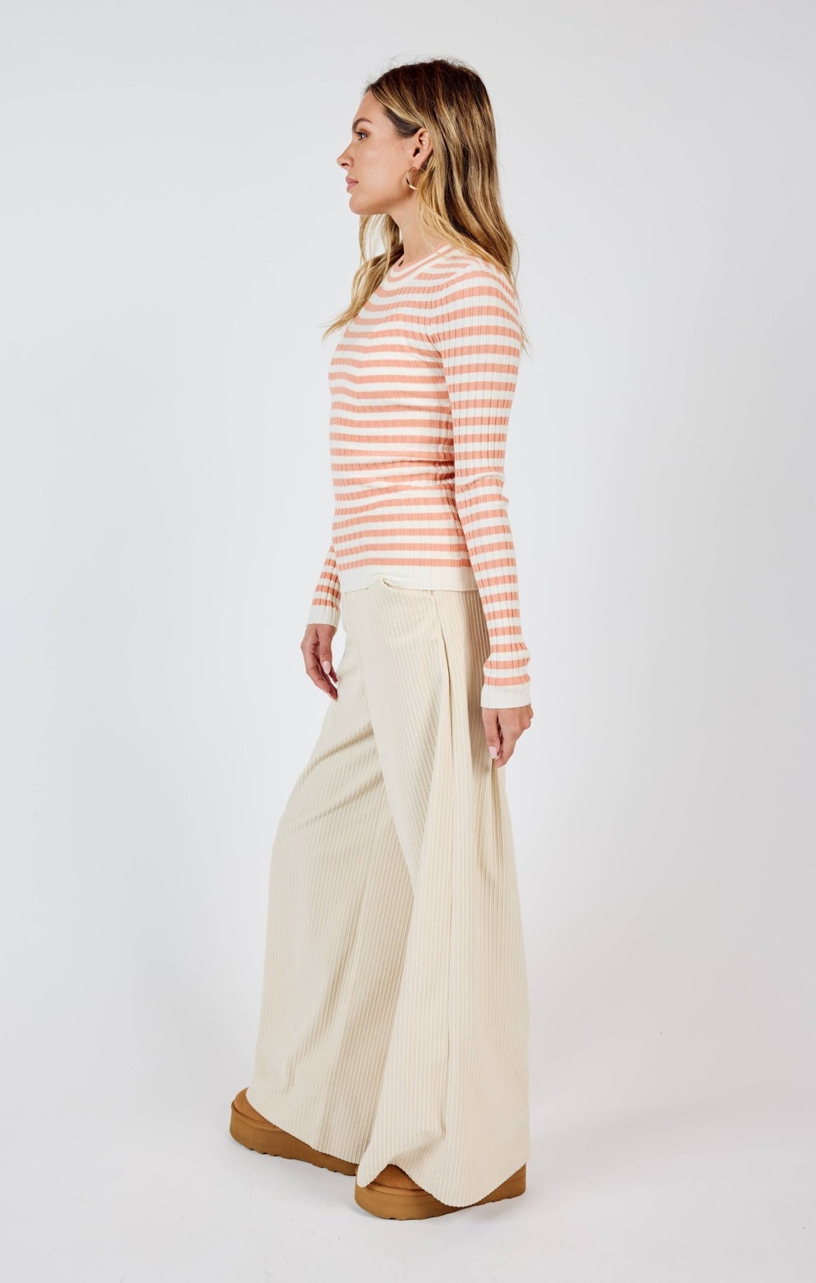 Autumn gals!! Get your fashion game on point with our Striped Sweater! Made with a blend of rayon, polyester, and nylon, this versatile piece offers both style and comfort. The flattering fit is highlighted by our 5'7" model wearing a size Small. Be ahead of the fashion game with this must-have item!