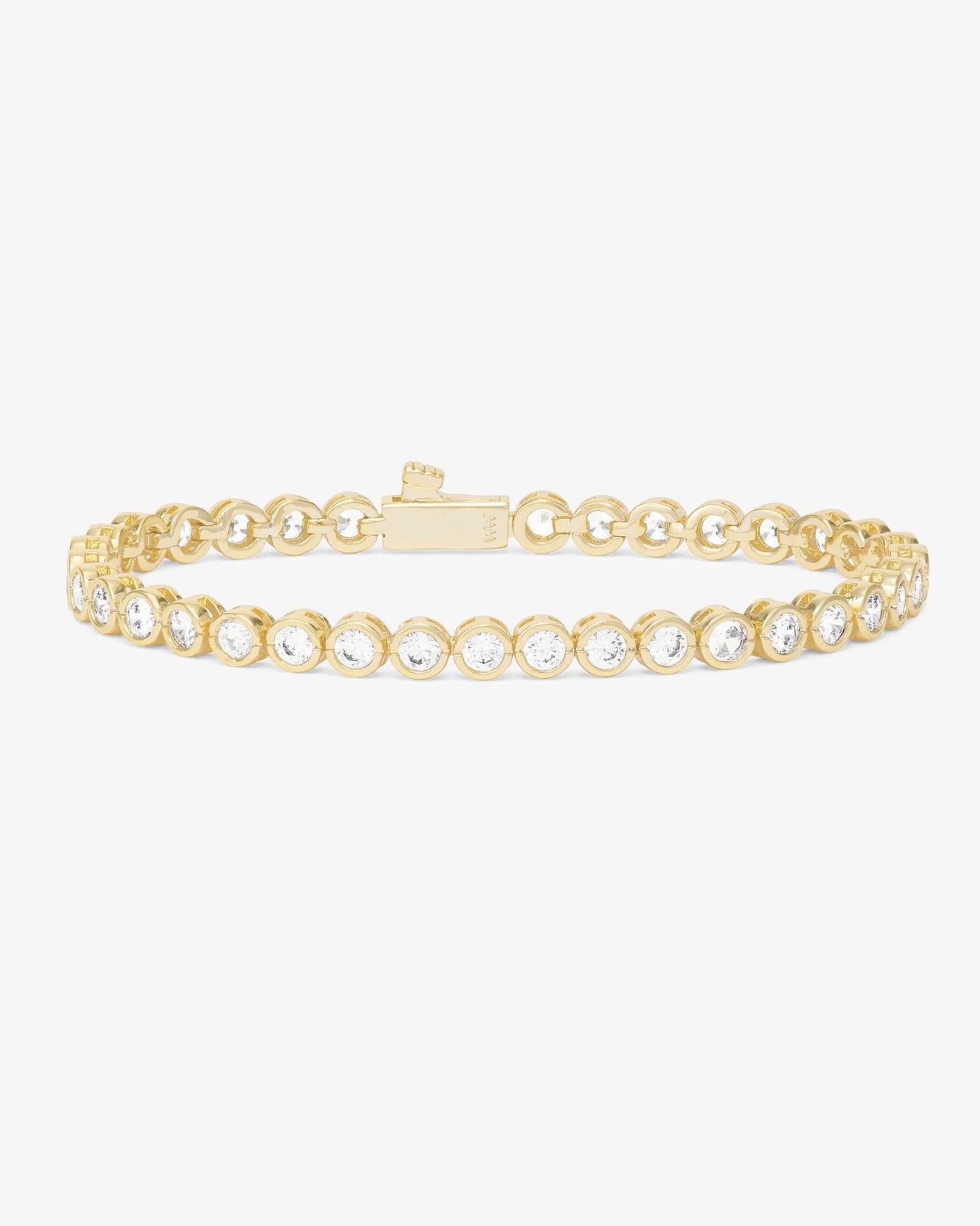 The iconic Baroness Tennis Bracelet is a modern take on the classic tennis style bracelet. With bezel set simulated diamonds, this tennis bracelet dazzles from all angles and in the perfect size to be worn no matter the occasion, day or night.